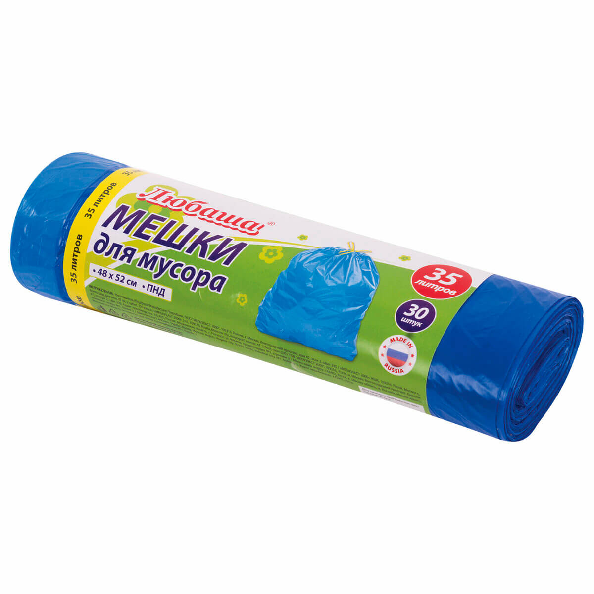 Изготовлены из высококачественного полиэтилена низкого давления (ПНД) толщиной 13 мкм, они готовы к самым сложным задачам. Размеры - 48х52 см (±5%), а объем - 35 литров. В рулоне - целых 30 мешков, каждый с удобной завязкой.