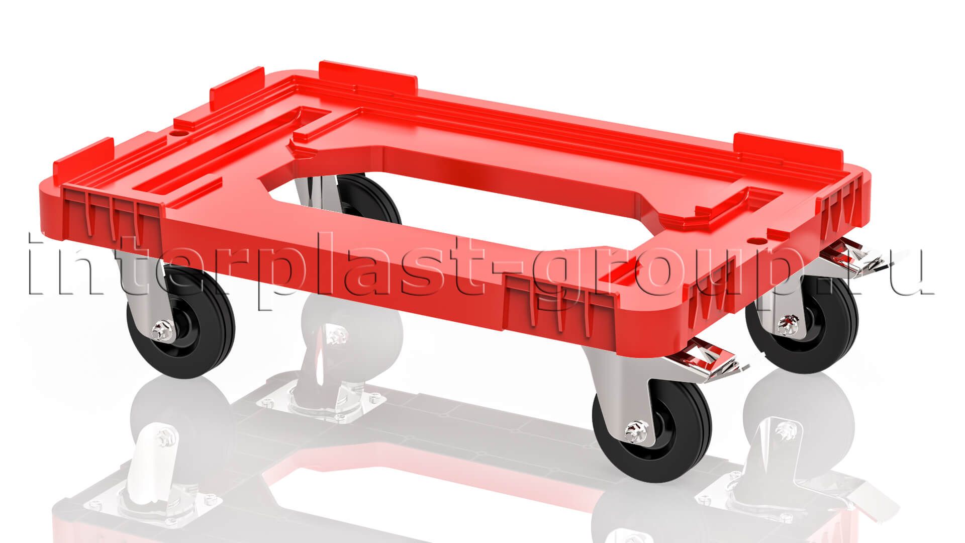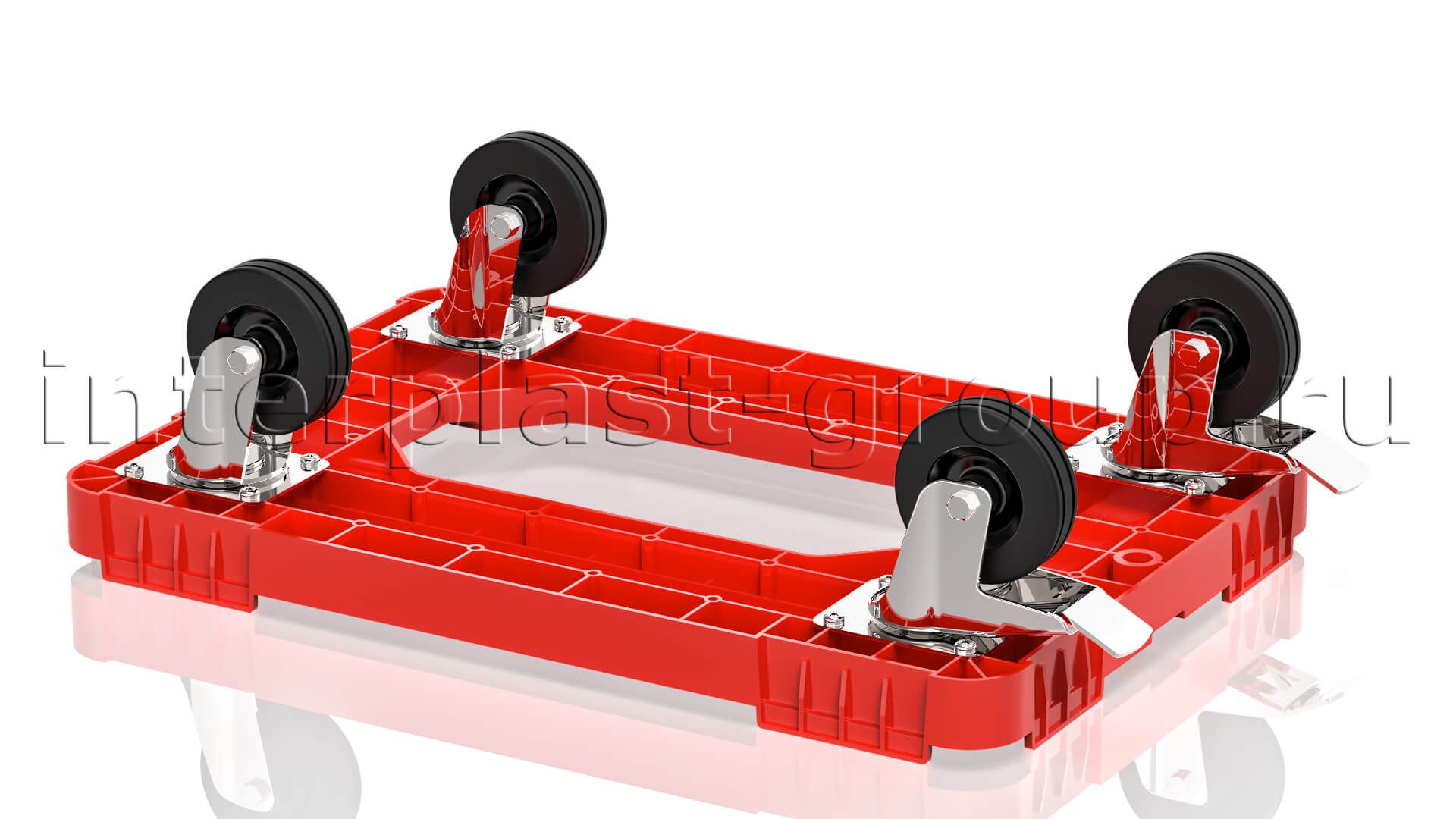Тележка пластиковая с отверстием 2 колеса с тормозом красная в Златоусте
