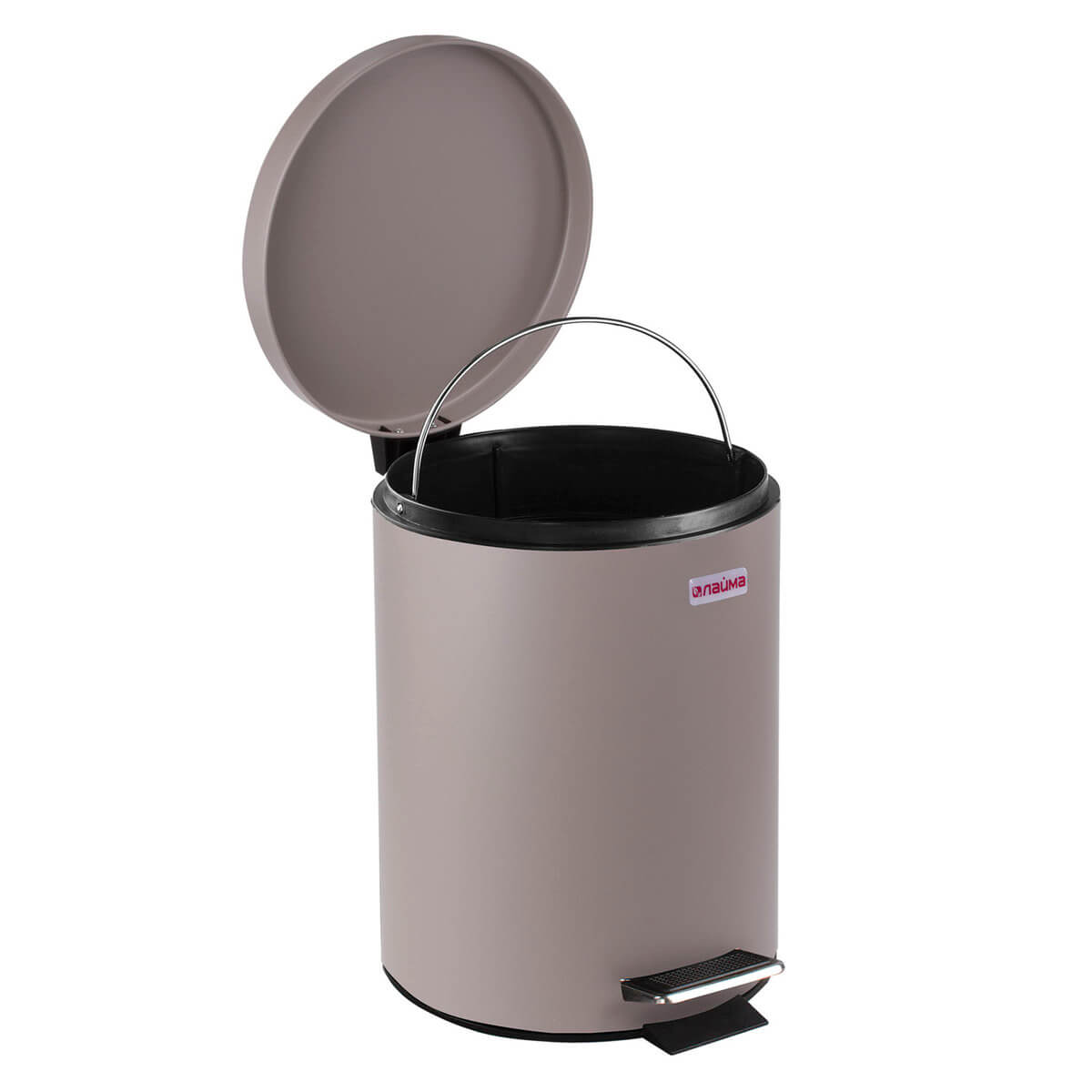 Ведро-контейнер для мусора (урна) с педалью LAIMA Classic, 12 л, серое, матовое, металл, со съемным внутренним ведром