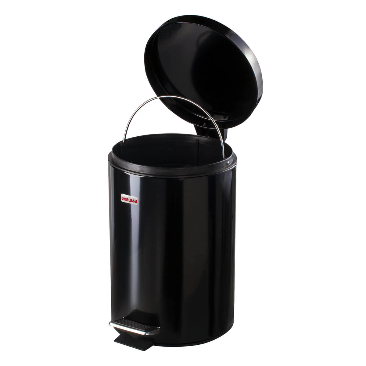 Ведро-контейнер для мусора (урна) с педалью LAIMA Classic, 12 л, черное, глянцевое, металл, со съемным внутренним ведром